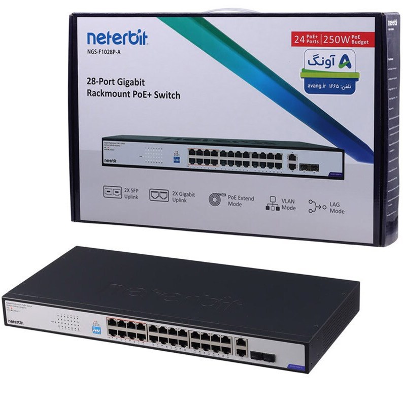سوئیچ Neterbit NGS-F1028P-A یک سوئیچ PoE+ با 28 پورت است که برای نیازهای محیط‌های شبکه کوچک و متوسط طراحی شده است. این دستگاه شامل 24 پورت گیگابیت PoE و 4 پورت Uplink اضافی (2 پورت گیگابیت اترنت و 2 پورت SFP) می‌باشد و یک راه‌حل قدرتمند و قابل گسترش برای شبکه‌هایی با نیاز به توان و پهنای باند بالا ارائه می‌دهد. با پشتیبانی از PoE استاندارد IEEE 802.3af/at، این سوئیچ توانایی تأمین تا 30 وات برق برای هر پورت PoE را دارد، که آن را برای دوربین‌های IP، نقاط دسترسی بی‌سیم و سایر دستگاه‌های PoE مناسب می‌سازد.